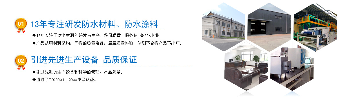 13年專注于防水材料的研發(fā),獲得工業(yè)產(chǎn)品生產(chǎn)許可企業(yè); 嚴(yán)格按照IS09001質(zhì)量管理體系標(biāo)準(zhǔn)進行管理......